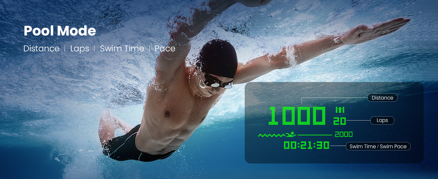 Track up to 10 key swim metrics.